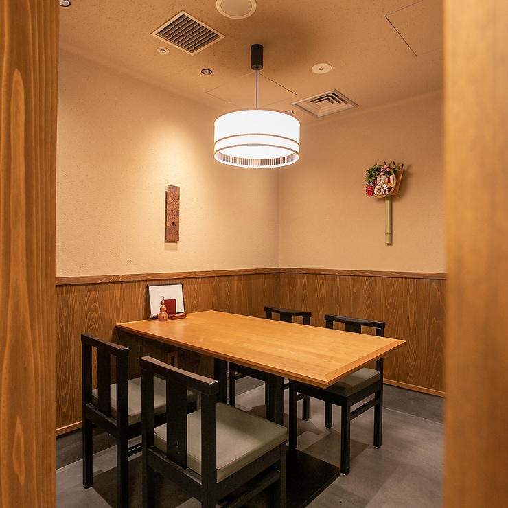 六本木ヒルズ内に位置する落ち着いた店内は、テーブル席を中心に構成されています。4名まで利用できる半個室を備え、少人数で周囲を気にせず過ごせる環境が整っています。総席数は28席で、貸切利用にも対応可能。くつろげる雰囲気の中で、ゆっくり食事と会話を楽しめる一軒です。