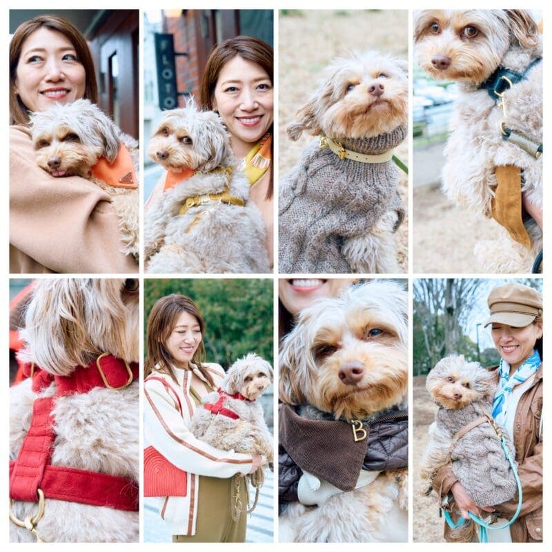 3年半前にチワワプードルのBeau(ボー)ちゃんを家族に迎えた栗谷さん。「ベージュ・ブラウン系が好きな私は、Beauの毛色にひとめ惚れ。海外に旅するたびに、リードやハーネスをお土産に買ってくるので、30種類以上はあります」(栗谷さん)。赤い別珍のハーネスに、同色のバッグを合わせたり、スカイブルーのリードとスカーフをリンクさせたり。「Beauとのリンクファッションが楽しくて」と栗谷さん。Beauちゃんのおしゃれ番長犬ぶりは、インスタグラムでも人気! ドッグウエルカムなスペースで「for HER TOKYO(フォーハートウキョウ)」を開店するときは、Beau店長としてお客さまを出迎えます。