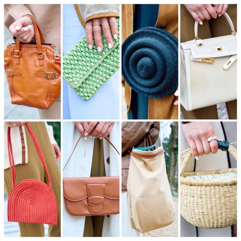バッグはどちらかというと、実用性よりもデザインとコーデとの調和を重視します。車で出かけるときは、レアな馬毛のケリーを。「1978年製で私の生まれ年。午年なので馬のモチーフが好きで、馬毛と聞いて、思いきって購入を決めました。私の宝物の一つです」と栗谷さん。ニナ リッチやイヴ・サンローランのヴィンテージバッグもあれば、ニースやマルセイユで出合ったかごやショルダーバッグなど、どれもが旅の記憶と直結しています。