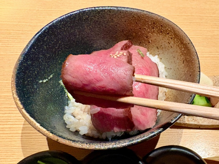 お肉を楽しんだあとは、熱々のおだしをかけて。サラリとかき込めば、肉の旨みが優しく溶け出します