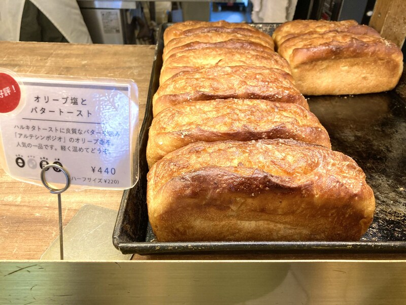 丁度焼きあがった「オリーブ塩とバタートースト」。
