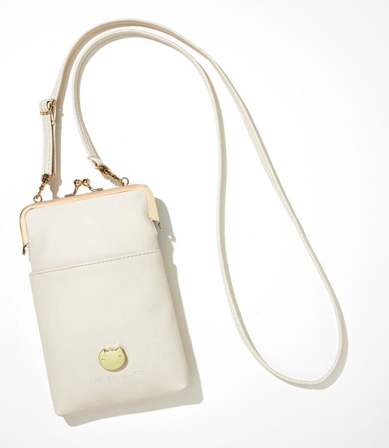 がま口なのでワンタッチで開けられ、ストラップを外せばポーチにもなる優れもの。