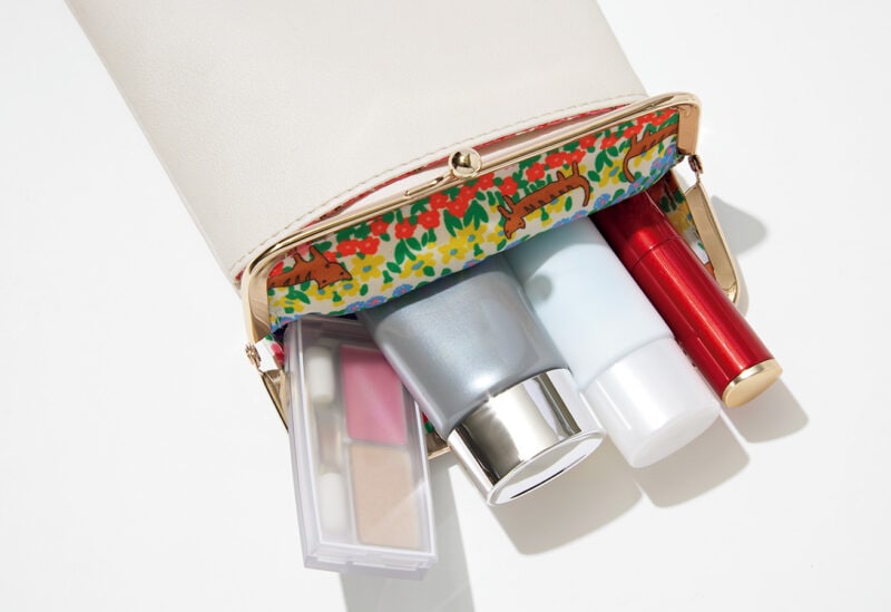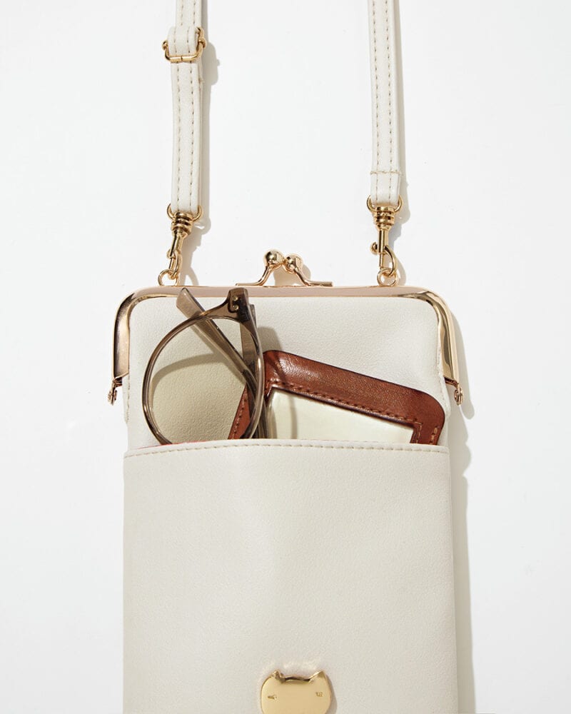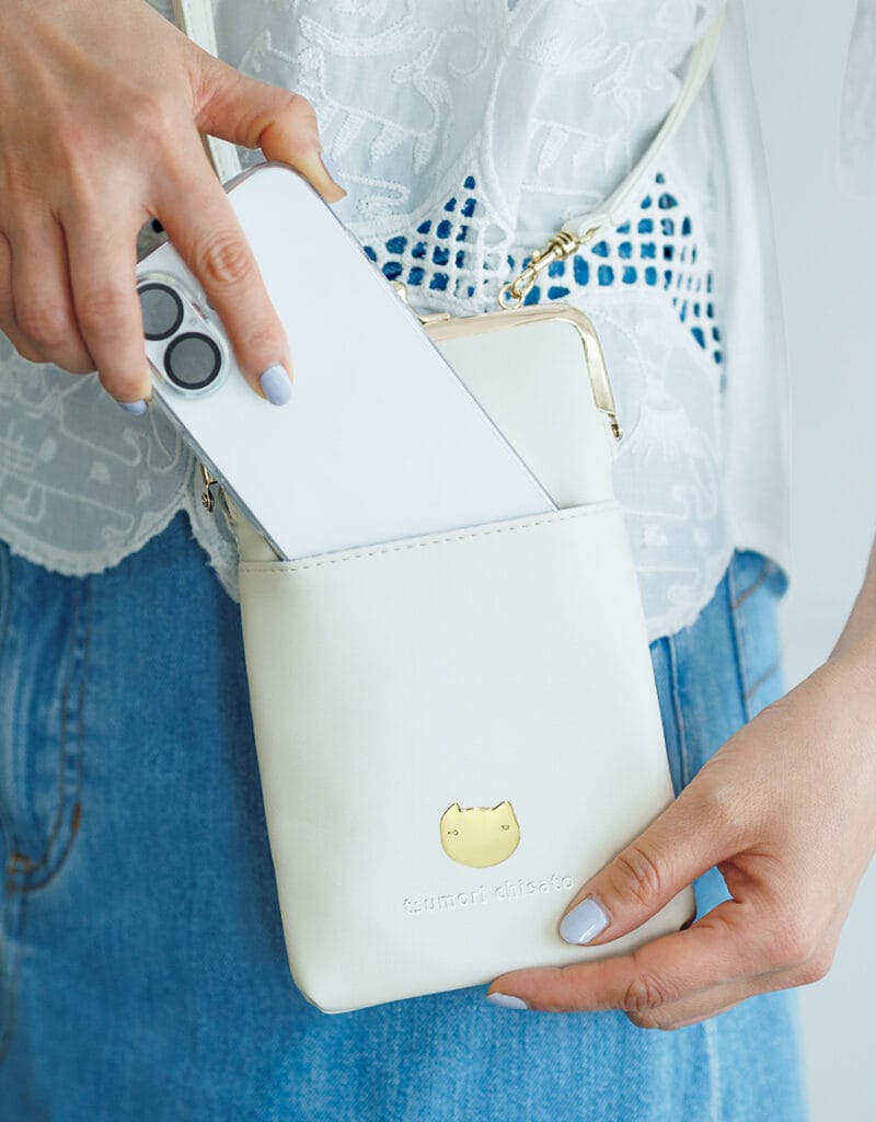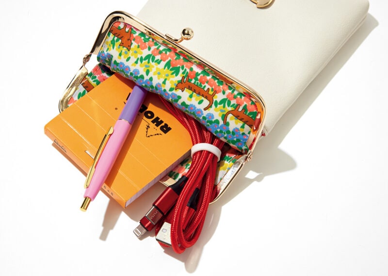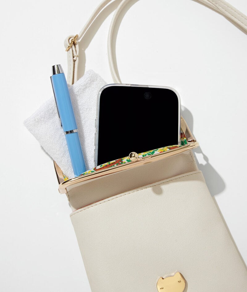 がま口なのでワンタッチで開けられ、ストラップを外せばポーチにもなる優れもの。