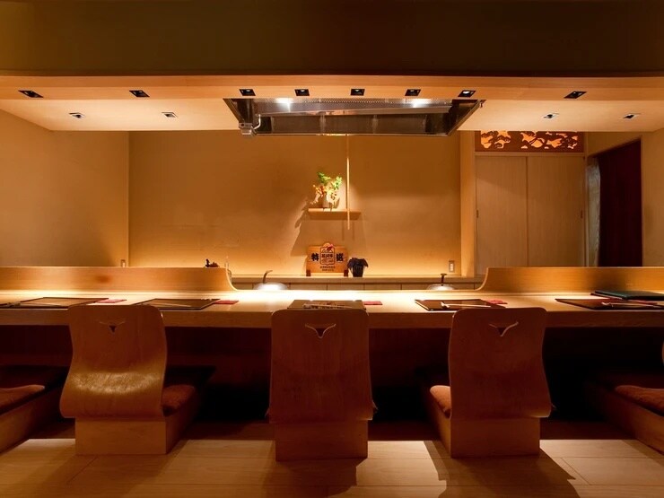 「銀座の社交場」としての品格が漂う店内は、和と洋の美意識が心地よく調和。お座敷風のカウンター席は、鉄板の熱気と料理人の鮮やかな手捌きを五感で楽しめる特等席として接待の場でも好評です。また、金色と黒を基調とした重厚感あふれる洋室個室など、その日の趣旨に合わせて最適な「個」の空間を選べるのも、この店ならではの魅力です。
