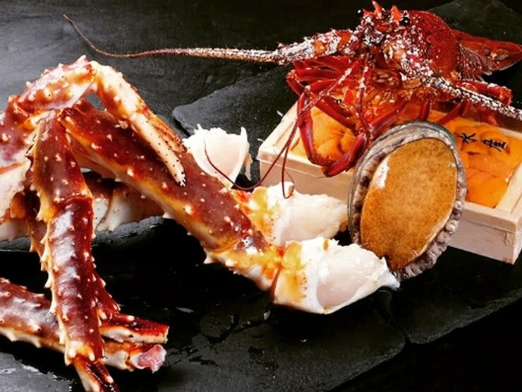 黒毛和牛の力強い旨みに華を添えるのが、日本各地から直送される極上の魚介たちです。力強い弾力のたらば蟹、高貴な香りを放つ黒鮑、そして繊細な甘みの伊勢海老。これらを刺身や鉄板焼といった、素材の良さを最も引き出す手法で提供します。日本料理の繊細さと鉄板焼のダイナミズムが融合したコースは、一皿ごとに季節の情景が浮かぶような、五感を刺激する美食の旅へと誘います。