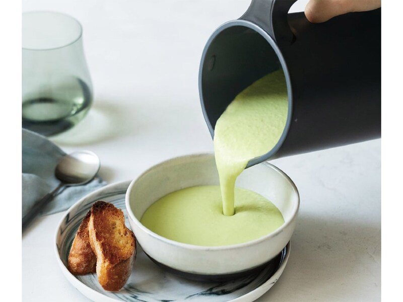 チタンコーティングを施した8枚刃による高い攪拌力でカレーやポタージュ、スムージーなどのニューを手軽に調理できるほか、保温・あたため機能で“出来たての温かさ”をキープ。