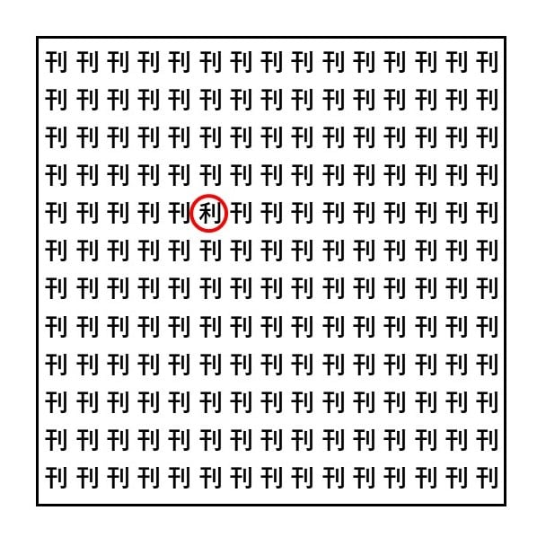 同じ漢字の中に、一つだけ違う漢字が混ざっています。それはどれでしょう?