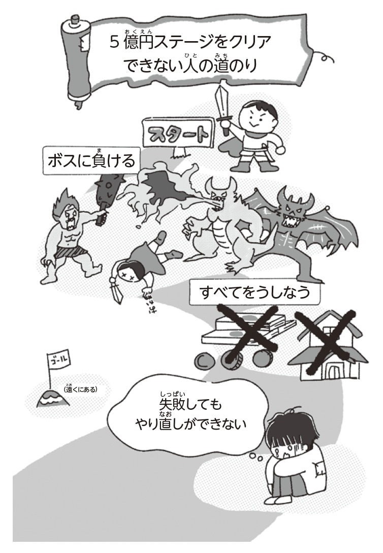 だから、ぼくはみんなに言いたい。強すぎるボスと戦うのではなく、安全にゴールできるステージに行こう。むだづかいモンスターを倒しながらまほうのお財布を使って、1億円の宝箱を手に入れる――それが、一番安全、かつ確実に人生のゲームに勝つ方法です。
