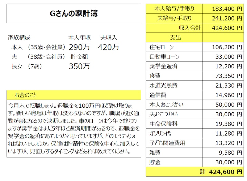 Gさんの家計簿は…?