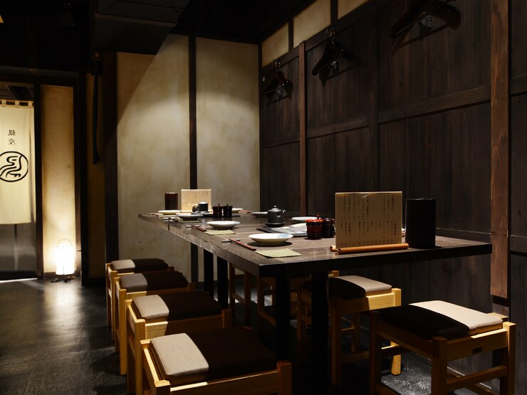 白木のカウンターが印象的な、清潔感のある落ち着いた空間。全45席の店内はカウンター席のほか、テーブル席や半個室、完全個室も備えています。歓迎会はもちろん、さまざまなシーンに応じた席選びが可能。ゆったりと食事と会話を楽しめる上質な空間が魅力です。