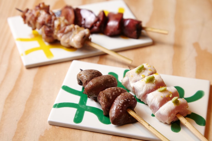 新富町駅から徒歩4分の場所にある【ヨシモリ】は、和食の技を取り入れた焼鳥が楽しめる一軒です。比内地鶏と名古屋コーチンを掛け合わせた山形県の地鶏を使用し、絶妙な火入れで仕上げます。どれを選んでも素材の持ち味を引き出した逸品揃い。小鉢や季節の野菜を使用した料理も用意され、焼鳥とともに日本の四季を感じられる構成です。
