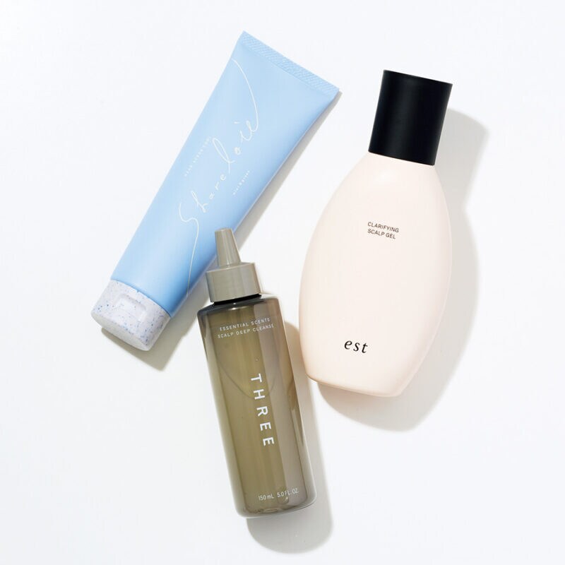 3.汚れや皮脂を取り去るだけでなく、頭皮にうるおいを与えて健やかに育む。THREE エッセンシャルセンツスキャルプ ディープ クレンズ150mL ¥3,960/THREE