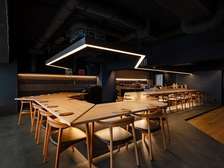 和モダンな店内は料理人の手仕事を身近で感じられる臨場感も魅力