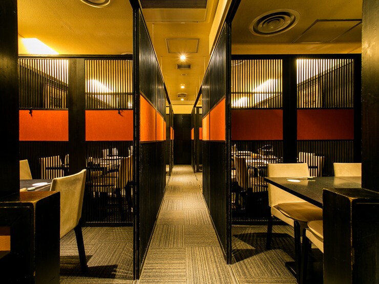 店内は格子扉で仕切られたテーブル席が並び、半個室としても利用できる落ち着いた空間です。人数に応じて仕切りを調整できるため、会食や歓迎会などにも対応可能。席数は32席で、周囲を気にせず食事ができる環境が整っています。ゆったりとした雰囲気の中で、素材にこだわった和食を味わえる一軒です。