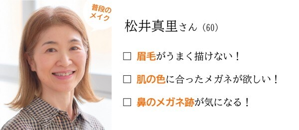 松井さんのお悩みは、「眉毛とメガネの色&かけ心地」