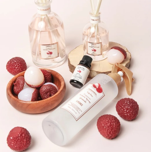 「ライチ コレクション」は、宮崎県新富町産の国産ライチの中でも、規格外として扱われる果実をアップサイクルし、エキスとして配合したサステナブルなフレグランス。ライチの瑞々しさに、カモミールやマスカットのやさしい甘さを重ねた香りが楽しめます。背景にある生産者の想いや自然とのつながりも大切にされたコレクションです。香水だけでなく、ボディやヘア、空間用アイテムまで揃い、日常のさまざまな場面で心地よい香りを取り入れることができます。