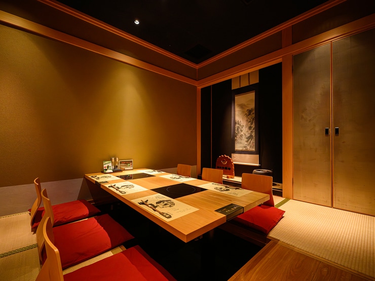 美しい木格子の意匠、薩摩切子や屋久杉のオブジェ、桜島の絵画など、鹿児島の自然や伝統工芸をモチーフにした和空間。カウンター席・半個室テーブル席・和室掘りごたつ個室がゆったり配置され、さまざまなシチュエーションに対応してくれます。料理・空間・もてなしともにハイクオリティで、記念日や大切な日にもふさわしい一軒です。