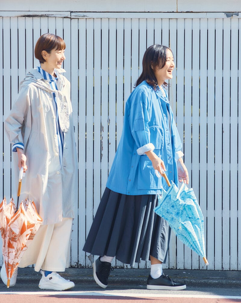 雨以外の日にも着こなしやすい素材感で、大人の女性にも使いやすいはず。