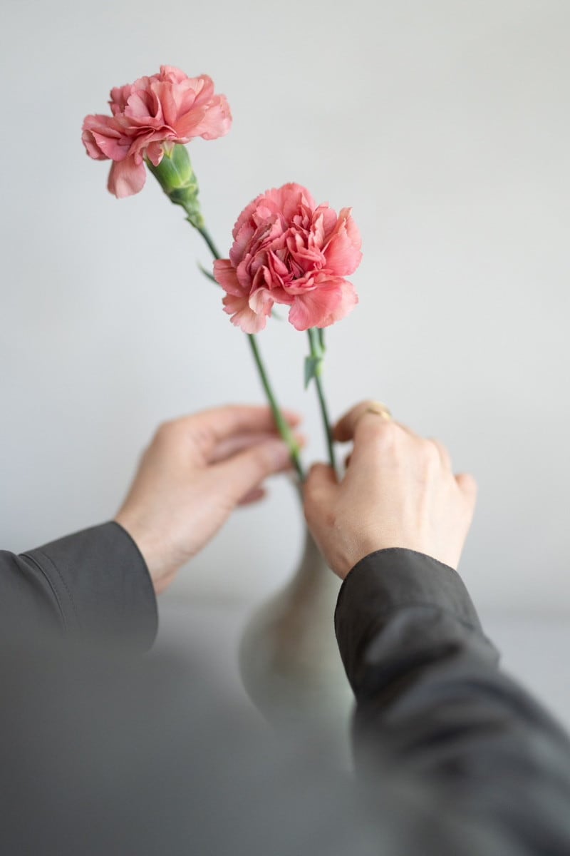 自分のためにいけるなら、お気に入りの色のカーネーションを数輪だけ、小さな花瓶に挿してみるのもおすすめです。