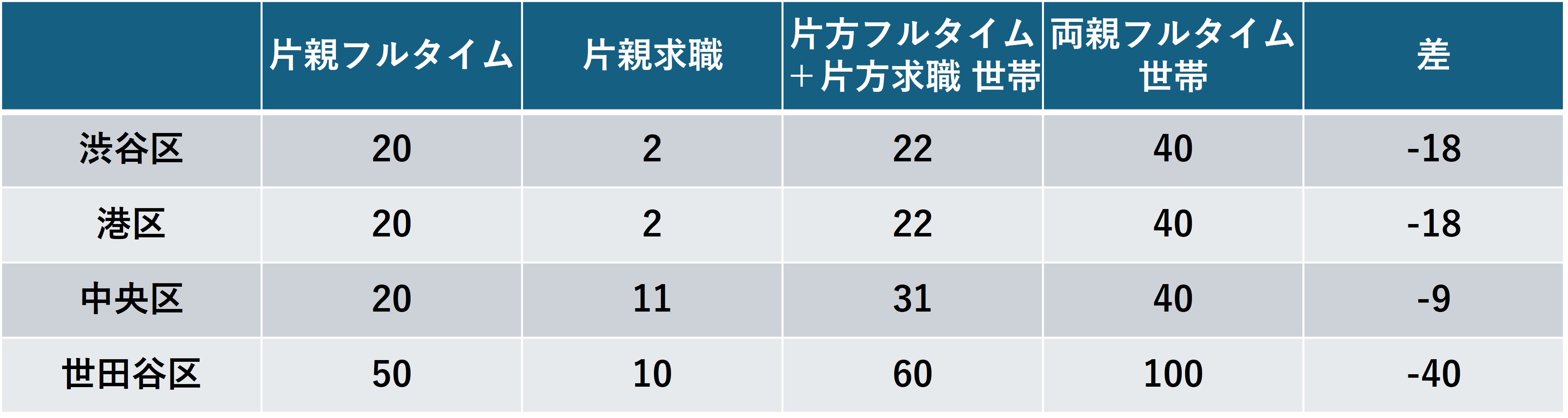 実際、都内主要区の利用調整基準を見ると、両親フルタイム世帯と片方求職扱い世帯の基本指数差は、渋谷区と港区で18点、世田谷区に至っては40点にも達します。この点差は、入園激戦区では事実上の「入園不可能」を意味します。