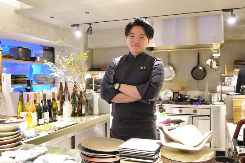 現在ここでタクトを振るうのは、2000年生まれの天間拓海シェフ。新富町の名店「coulis」で培った自由な発想と、実家の畑で土に触れてきた経験を武器に、25歳の感性を皿の上に爆発させている。