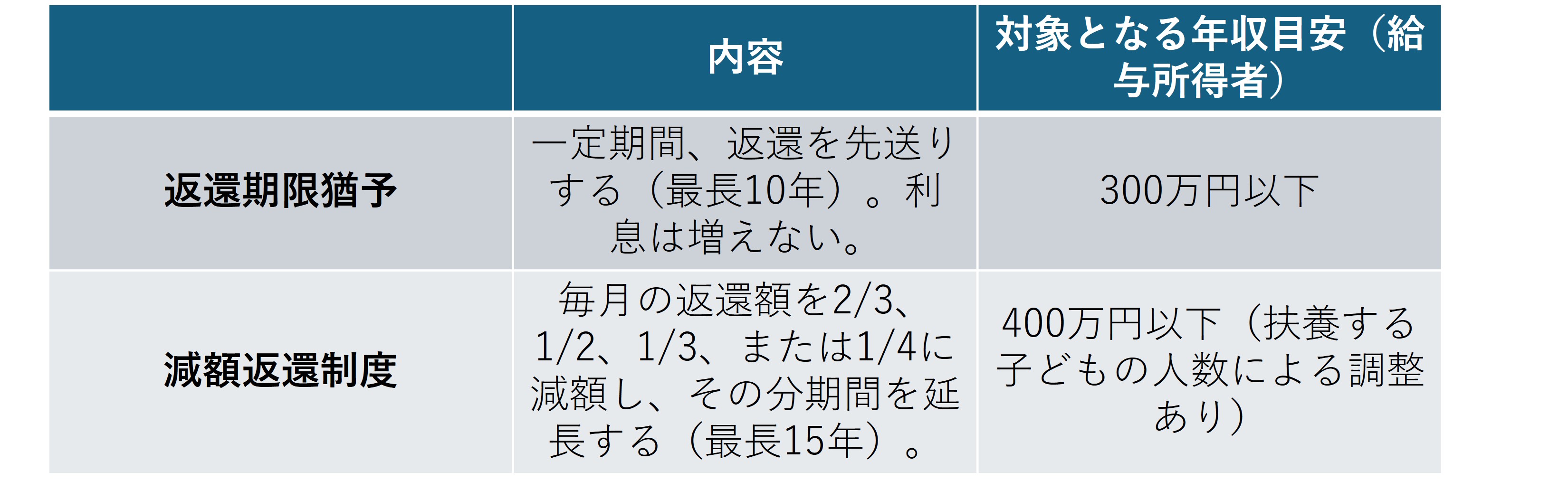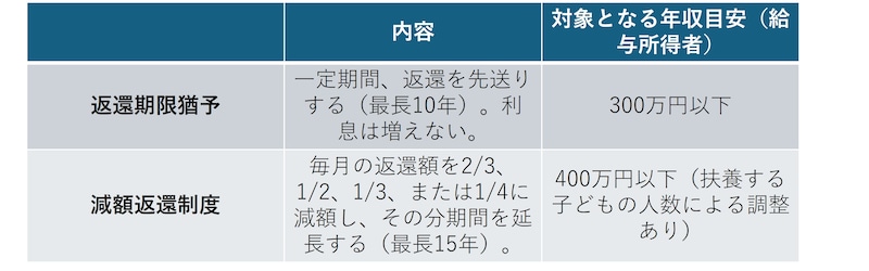 奨学金の返済が苦しくなった場合、すぐに親が肩代わりする必要はありません。まずは子どもが「返還期限猶予」や「減額返還制度」といった救済制度を利用すべきです(図表1参照、JASSOの場合)。