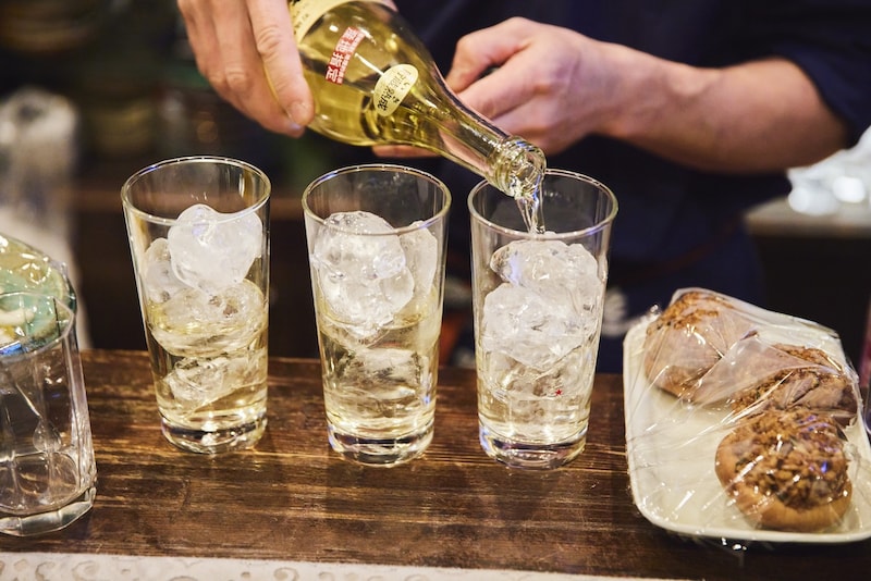 飾られた器を「長崎のものですか?」と聞くと、「母が長崎の出身なんです」と香取さん。不意に始まり、それでいて自然な会話が嬉しい。そして早速、加悦の定番麦焼酎・長崎の「壱岐」で乾杯!