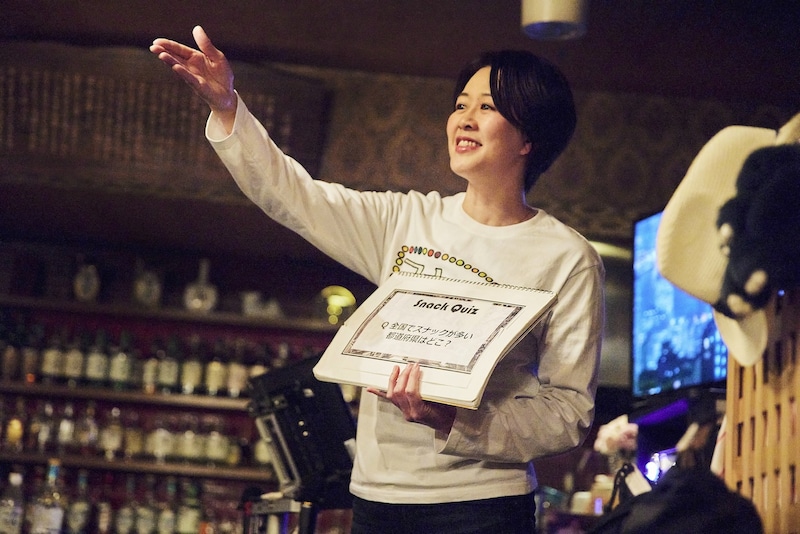 今回のツアーでも、途中にスナックについて理解を深めるクイズコーナーが。五十嵐さんがMC役となり、一般のお客さんも巻き込んで、大いに盛り上がった。