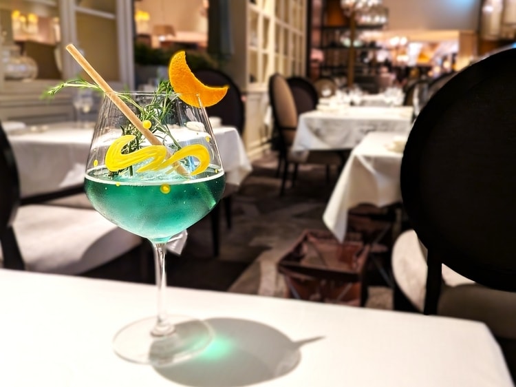 ゴッホ作「星月夜」による乾杯カクテル『星月夜~ゴッホ~』。ライムの香りやラベンダーシロップの優しい甘さを感じる爽やかな一杯。アルコール・ノンアルコールから選べます
