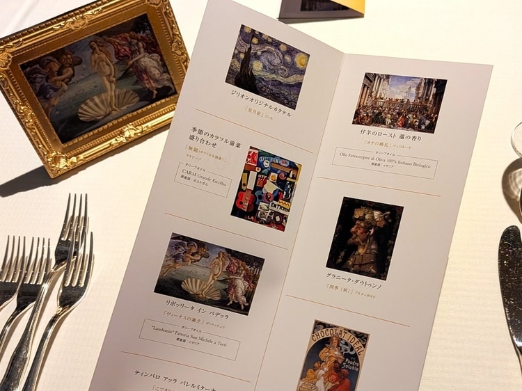 各席には、メニュー表を兼ねたインスピレーション元の名画についてのパンフレットも