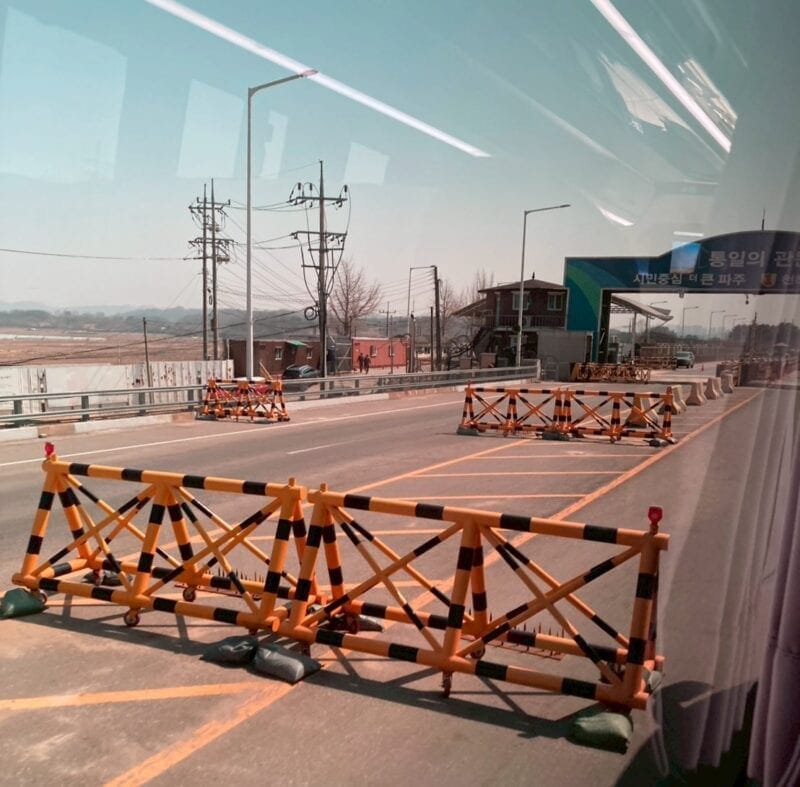 滞在先のソウルからバスで1時間半ほどで到着。韓国の軍の方からパスポートチェックを受けてDMZに入ります。