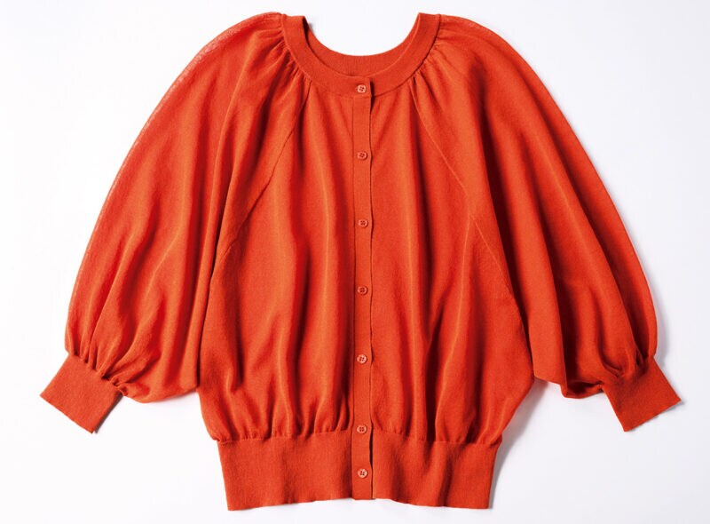 今年トレンドのショート丈カーディガン。大人はゆとりのあるシルエットが正解。