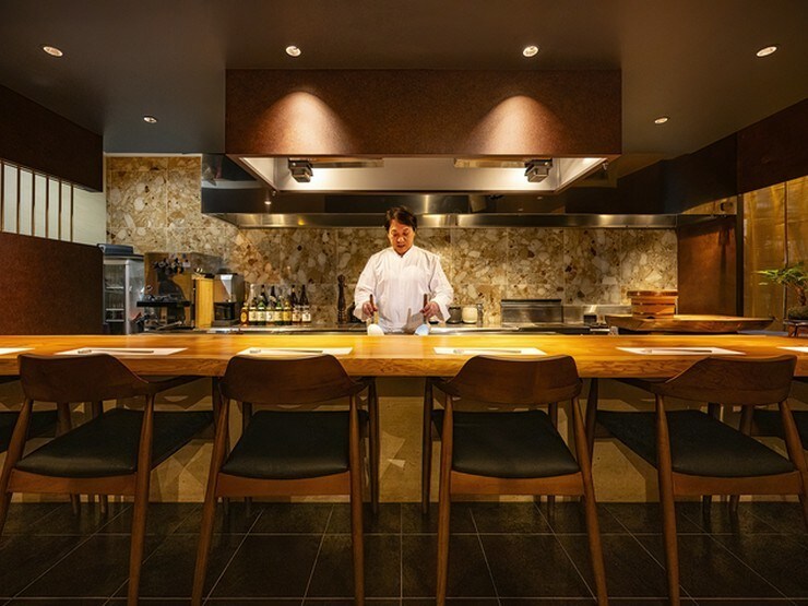 高級感あふれる店内には、卓越した料理人の技を目の前で見ながら食事ができるカウンター席をはじめ、洗練された完全個室も用意されています。個室は2名から利用できるので、記念日や誕生日のお祝いなどにもぴったり。多彩な九州食材を使った料理が提供されるので、出張や旅行で福岡を訪れた際にも、ぜひ足を運んでみてはいかがでしょうか。