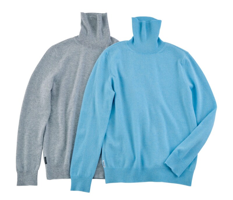 天然素材にこだわり、着る人の心地よさを追求しながらものづくりを続ける〈マドモアゼルノンノン〉。今季の注目は、内モンゴル自治区で作られるアラシャンカシミアを使用したニット。綿から染色することで、さらにふんわりと滑らかな肌触りに仕上がっている。一枚でもジャケットの中にも着られる、使い勝手のいい編み目の細かさで、ロングシーズンで活躍。