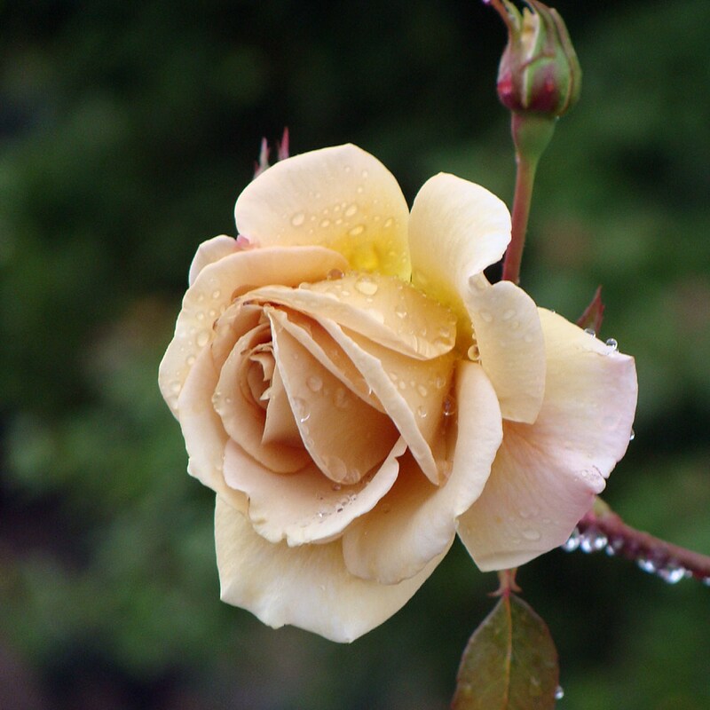 花の特徴/淡いベージュ色が儚げな美しさを放つ。花径約10cm。