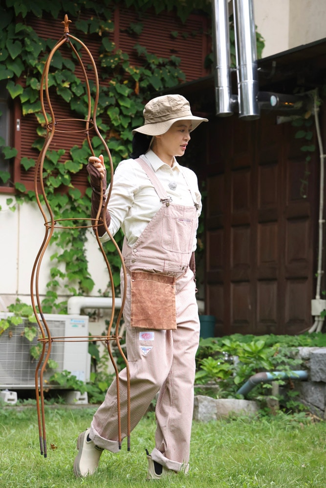 猛暑を経て、庭のシンボルであり、黒谷さんにとって憩いの空間であるパーゴラも、テイカカズラの葉が伸び放題に…。こちらもメンテナンスしていきます。