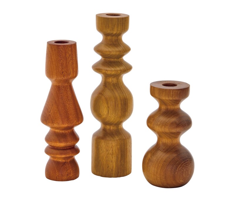 彫刻家のアリス・ダミアンが手がけるフランスのプロダクトブランド〈ロミー・オブジェッティ〉。ユニークなフォルムが目を引くキャンドルホルダーは、家具職人である父が北フランスの工房で育てた木を使用。手彫りなので、ひとつずつ表情が異なる。