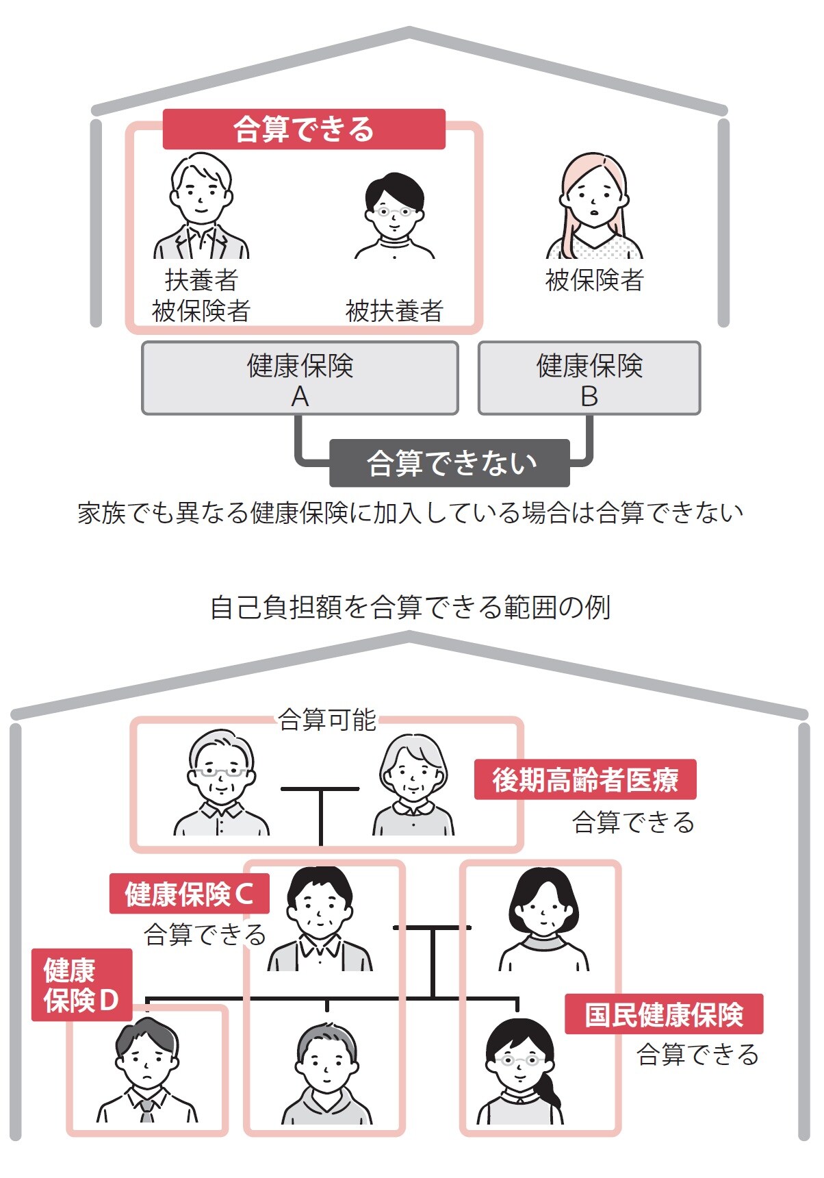 限度額適用認定証やマイナ保険証では世帯合算は行えませんのでご注意を。