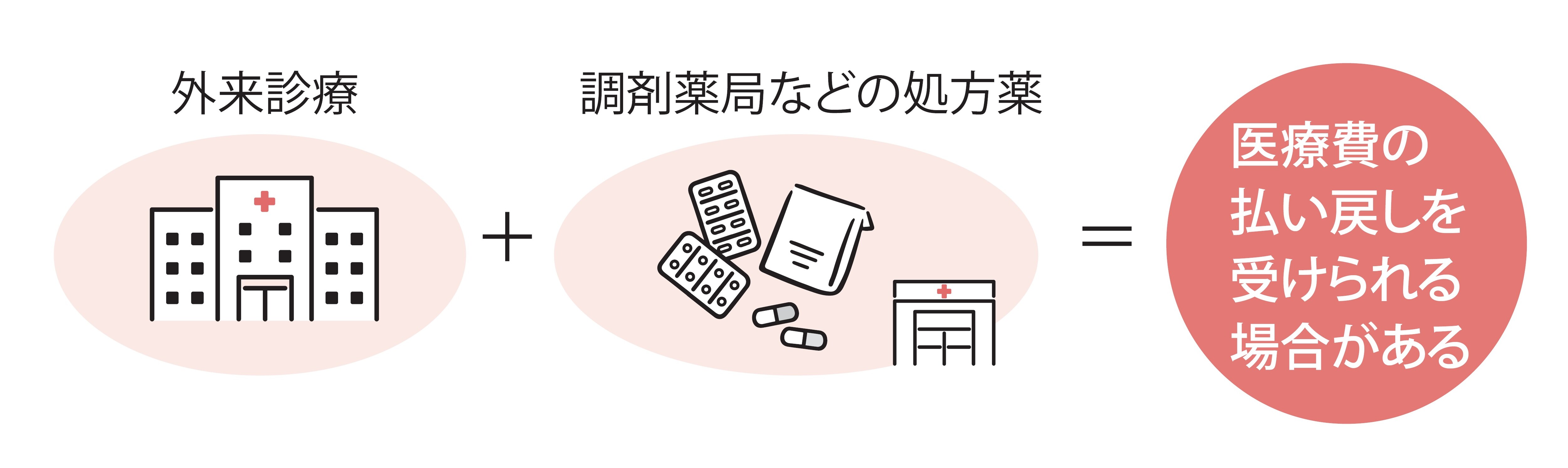 また、院外処方を出された外来診療科と、調剤薬局などの処方薬の代金については、いったんはそれぞれ高額療養費の自己負担額まで支払わなくてはなりませんが、合算して医療費の払い戻しを受けられる場合があります。