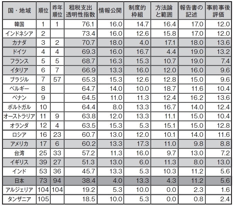 欧州の国際研究機関が発表した「世界租税支出透明性指数」の2024年版レポートによると、日本の順位は調査対象105カ国・地域中73位と国際的に見て低く、G7諸国の中でもかなり低い結果となりました。