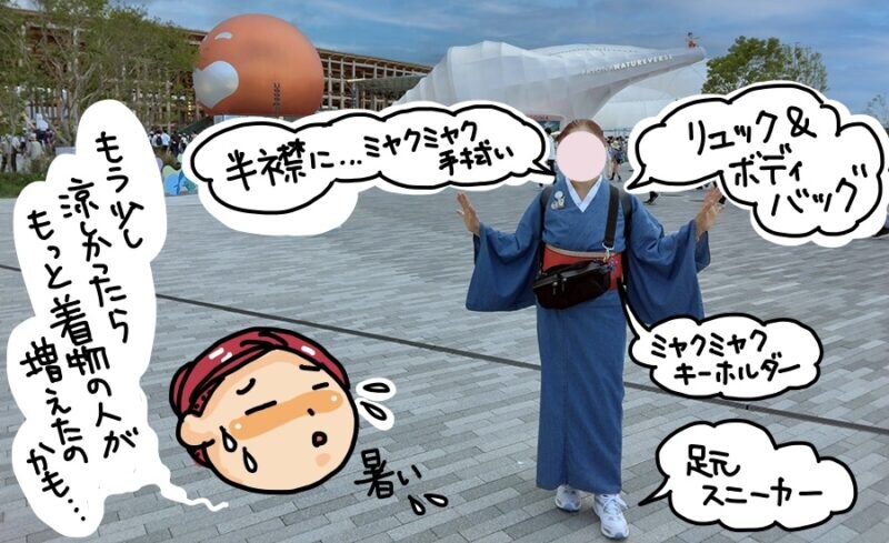 いよいよクライマックスの大阪・関西万博。着物初心者が無謀にも「着物で万博」に挑戦してみました! ハプニングもありましたが、ミャクミャクにちなんだカジュアルコーデで、また新しい楽しみ方を発見しました。