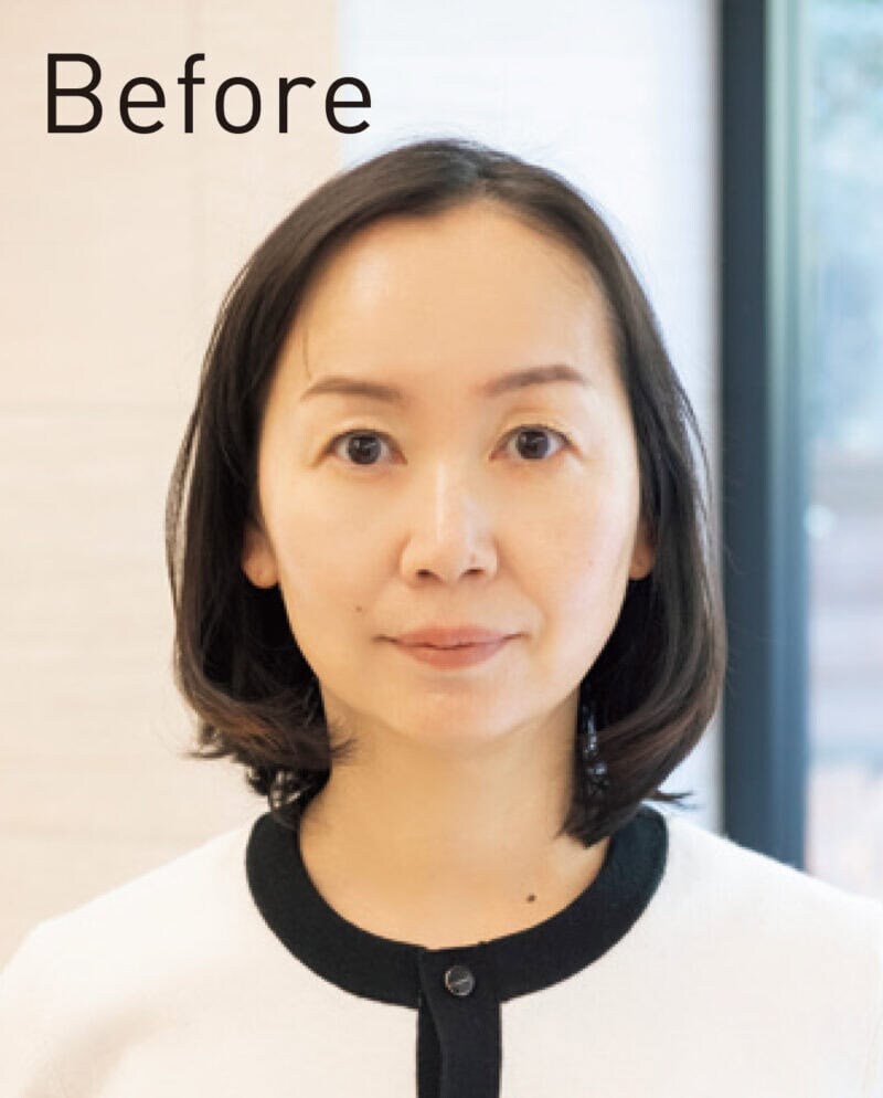 輪郭を見え隠れさせることで、丸顔をすっきり見せつつ、卵型のようなシルエットに補正。