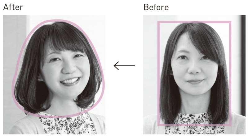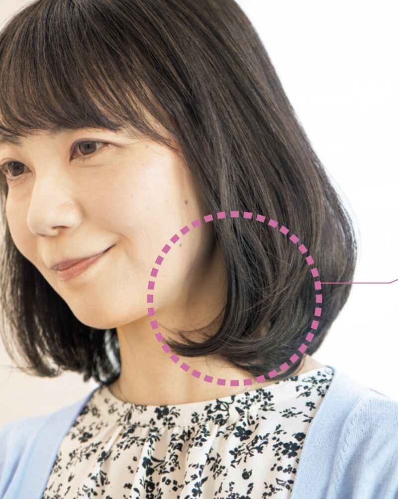 さらに、前髪のつくり方で骨格をカバーし、より小顔に。