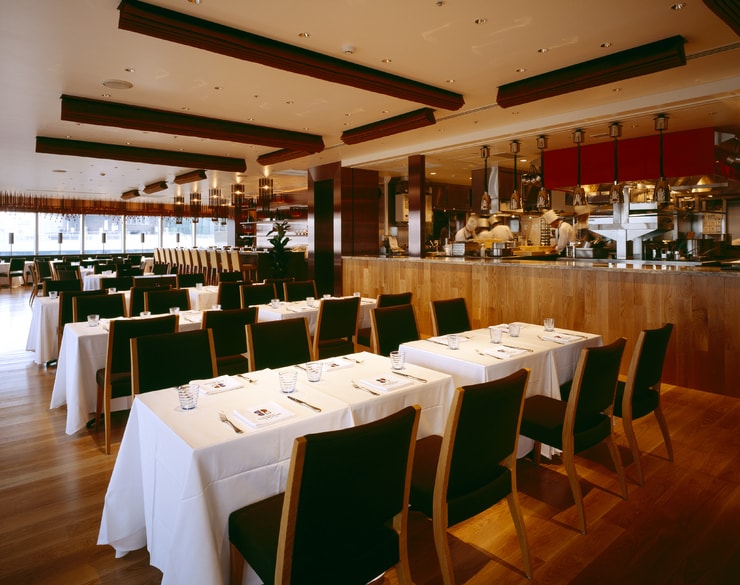 現代フランス料理の礎を築いた料理人ポール・ボキューズ氏より受け継がれたクラシックな料理を、普段使いで楽しめる【ブラッスリー ポール・ボキューズ 銀座】。銀座の街並みを望む開放的なメインフロアは全100席。ライブ感のあるオープンキッチンなどブラッスリーらしさはありつつも、どこか気品を感じさせます。