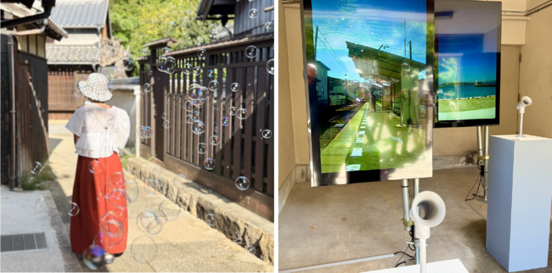 本島と次に訪れた宇多津・古街(こまち)地区では、筧康明(かけひやすあき)さんによるネットワークインスタレーション《Echoes as Air Flows》が展開されています。