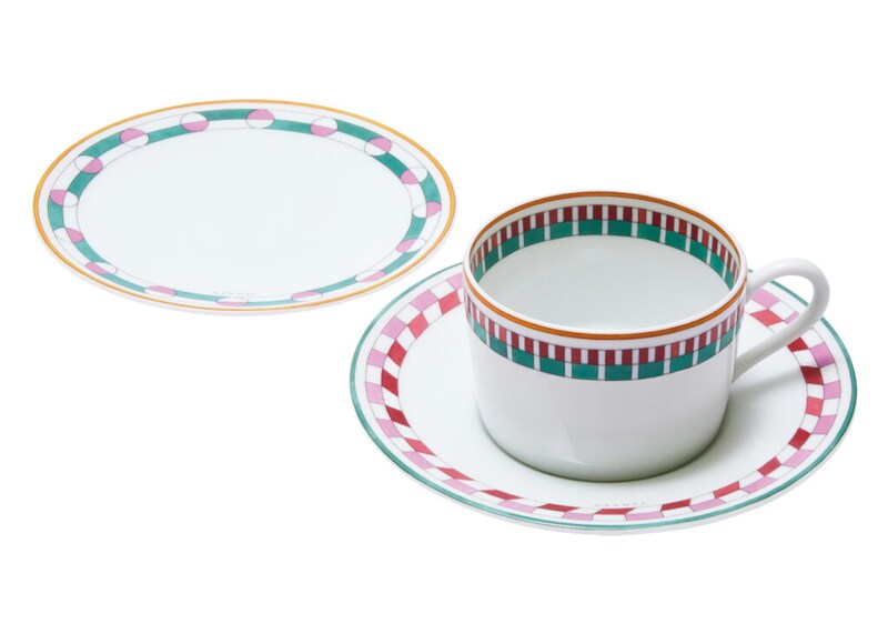 〈エルメス〉から、独創的な幾何学模様が主役のテーブルウェアが登場。建築家でもありアーティストのナイジェル・ピークがフリーハンドで描いた柔らかいタッチと、穏やかな水彩の色合いがやさしく調和。ほかに、ティーポットやボウルなども展開する。