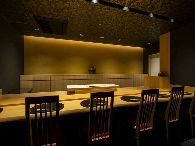 黒を基調とした店内は、ダウンライトがオシャレな雰囲気です。全6席のカウンター席のほか、テーブル席や個室も用意されているので、一人旅でもグループ旅行でも利用できます。店主が選んだ北陸のお酒などのドリンク類も豊富で、こだわりのお酒とのペアリングが楽しめます。シックでラグジュアリーな空間で、ゆったりとした大人の贅沢な時間を過ごしてみてはいかがですか。