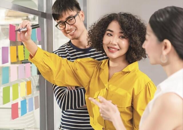 また、使用目的やコミュニケーションの相手に合わせて選べるの3つのカラータイプを提案。文字が読みやすく、優しい色合いの「パステルカラー」はメモやタスク管理に、目を引く色合いで文字が読みやすい「ブライトカラー」は伝言メモやグループワークに、遠くからでもよくめだつ「アクセントカラー」は注意喚起や分類表示への使用をおすすめしている。