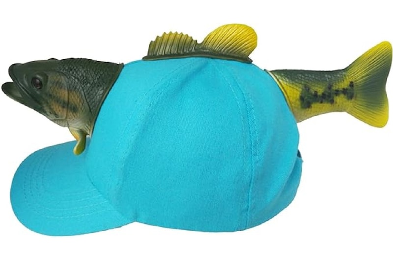 遠くからでも目を引くインパクト抜群の魚キャップ。