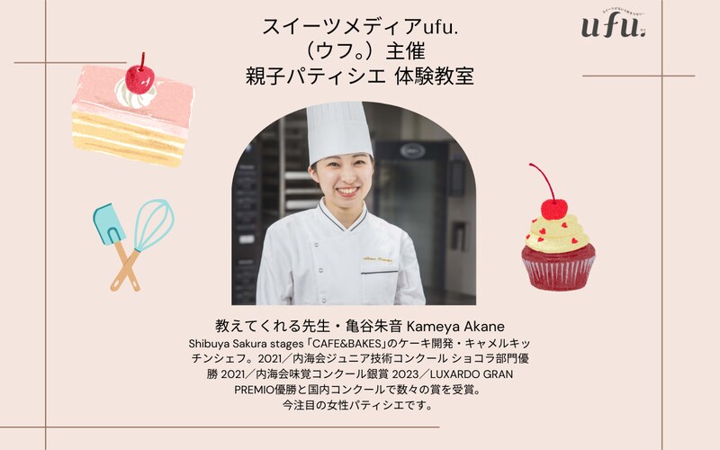 立教大学ホームカミングデーでは、スイーツメディアufu.(ウフ。)主催で、親子パティシエ教室を行います。先生は、Shibuya Sakura stagesでキャラメルキッチンのシェフをつとめる亀谷シェフ。詳しくは下記リンクにてご確認ください。